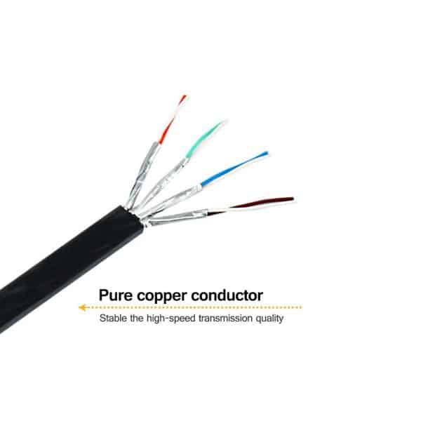 - SHIELDED TWISTED PAIR (STP) OF COPPER WIRES – Compared to the Cat 6 Ethernet cable, the additional shielding and improved quality in twisting of the wires provides better protection from crosstalk, noise, and EMI/RFI interference that can accurate data transfer and reliability.
