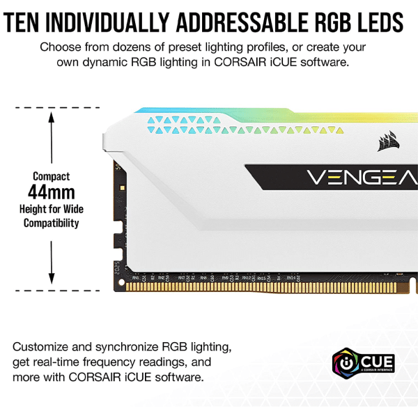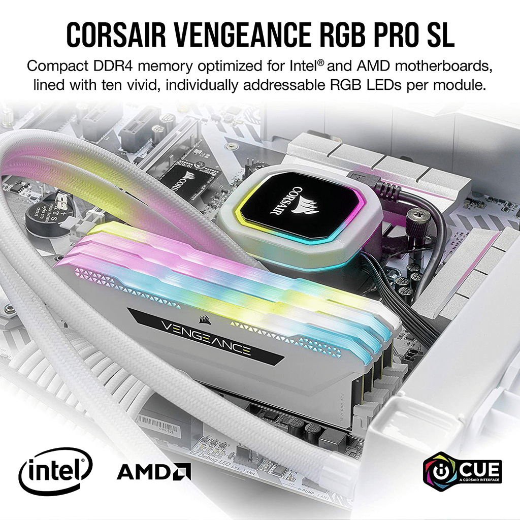 CORSAIR VENGEANCE RGB PRO SL DDR4 memory lights up your PC with dynamic, individually addressable RGB lighting, while delivering peak performance in a compact form factor.