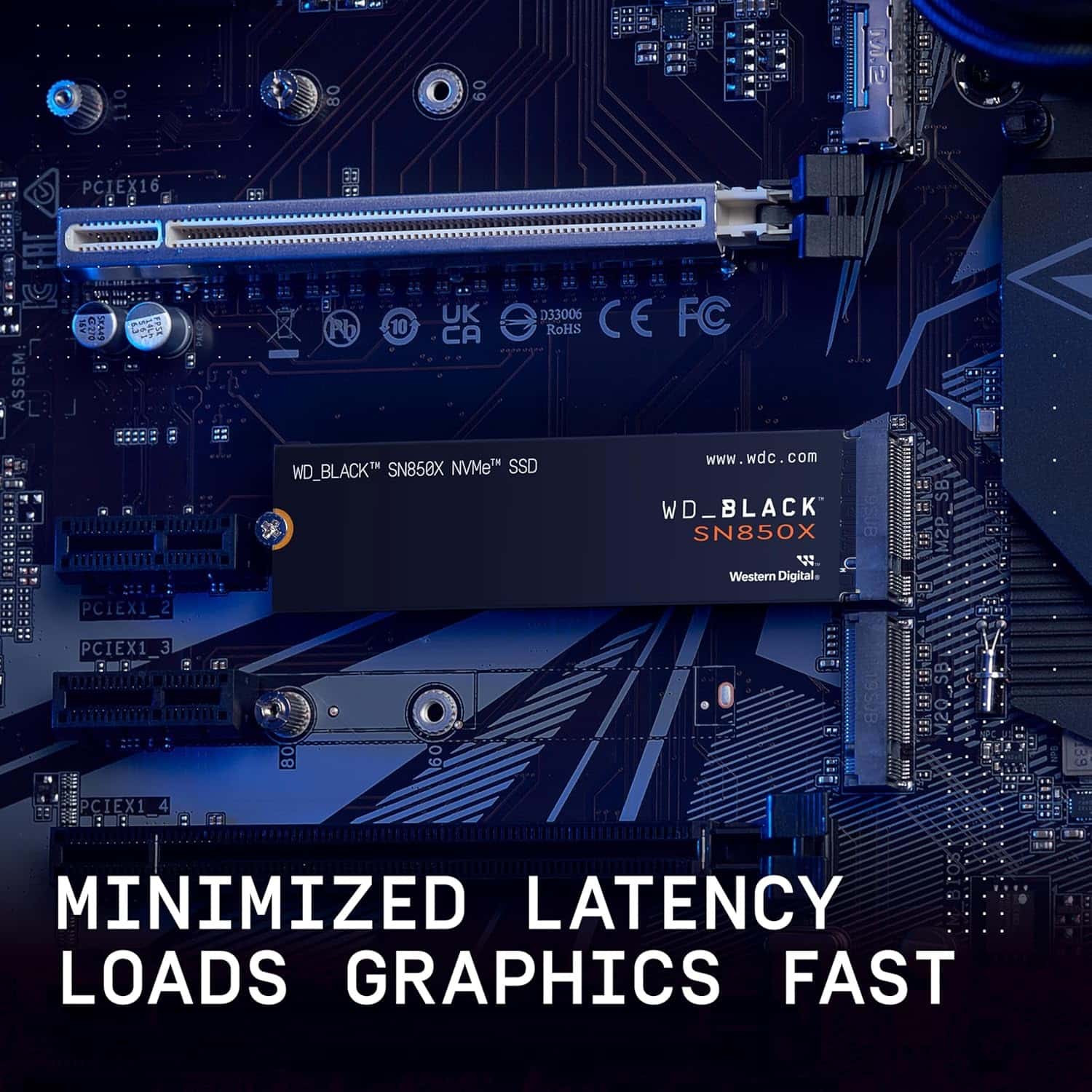 BUILT FOR ELITE GAMING.Crush load times and slash throttling, lagging, and texture pop-ins with the WD_BLACK SN850X NVMe™ SSD. Available in capacities of 1TB up to 8TB, this gaming drive is built for top-tier performance. With 7,300MB/s speeds (1TB - 4TB models) and a heatsink option to maintain performance, you can enjoy your favorite games without worrying about lag. Plus, the downloadable WD_BLACK Dashboard (Windows® only) can automatically turn on Game Mode 2.0 features. The WD_BLACK SN850X NVMe™ SSD delivers a smooth, fast experience —and the innovations that let you compete at your absolute peak.GAIN THE ULTIMATE GAMING EDGEInsane speeds up to 7,300 MB/s (1TB - 4TB models) deliver top-tier performance with ridiculously short load times — for the elite gaming experience you’ve been waiting for.DIRECTSTORAGE SUPPORTEDImprove load times and get precious time back with Microsoft® DirectStorage technology. |