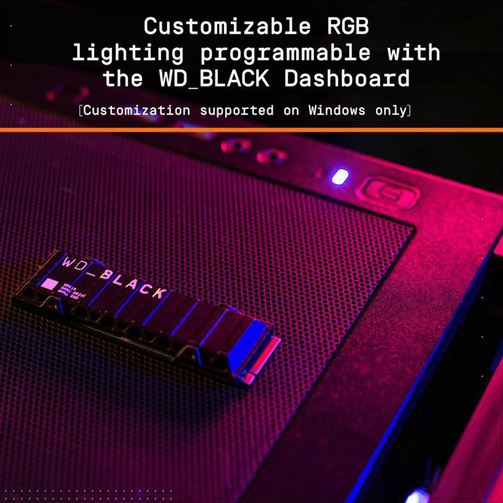 - Customizable RGB lighting programmable with the WD_BLACK Dashboard