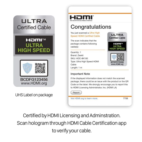 All lengths of Maya series HDMI are certified and have Ultra High Speed HDMI Cable label, with scannable QR code.